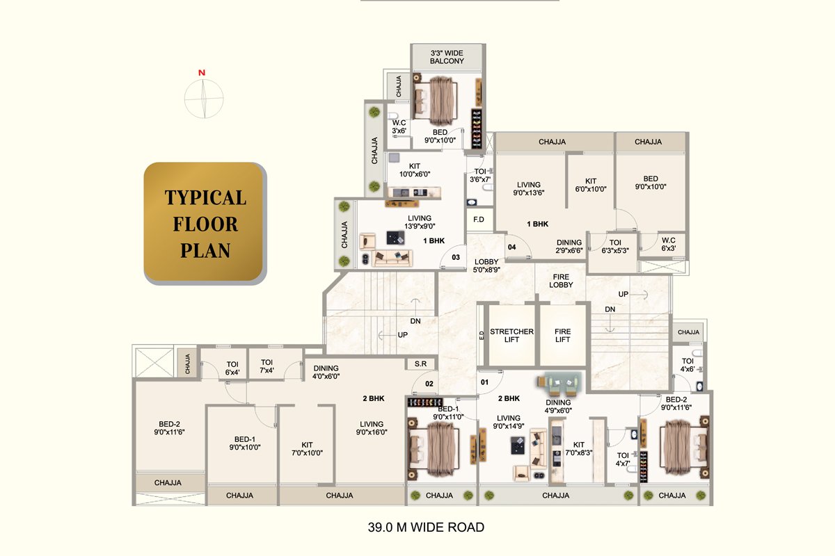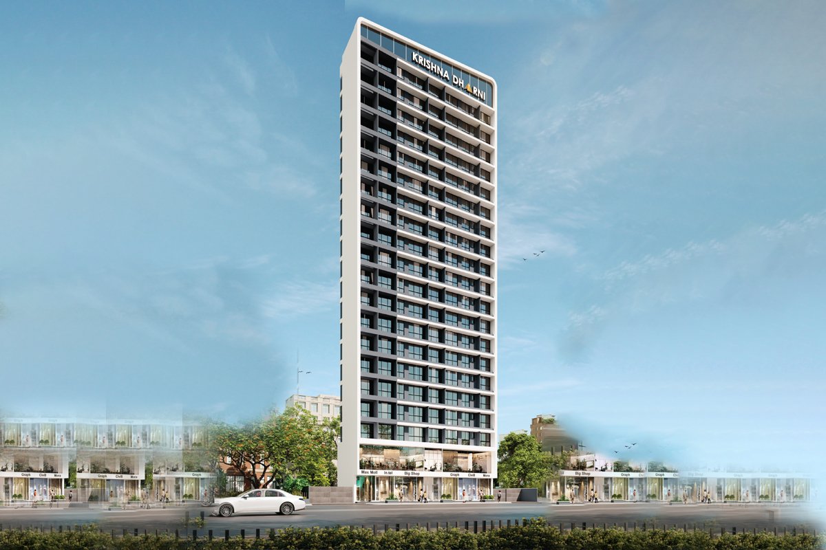 Krishna Dharni A1 is a G+19 storeyed high-rise tower located on a CIDCO tender plot at Plot No. A-1, Sector-17, Ghansoli. Developed by the Krishna Group , the project offers 1 and 2 BHK classic homes along with G+1 commercial shops and a tower parking system. Residents have access to terrace floor rooftop amenities and benefit from a highly central location just a 1-minute walk from D-Mart and 5 minutes from Ghansoli Station. The project is situated near major landmarks like the Thane-Belapur Road , ASP Public School , and is approximately 5 minutes from the local bus depot , making it a well-connected residential and commercial hub in Navi Mumbai